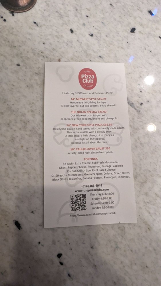 Welcome to HobNob Pizza, the exciting new name for what was formerly known as UA Pizza Club. Nestled in Upper Arlington, Ohio, this local gem specializes in handmade pizzas that cater to all tastes. With options like the Midwest Pizza, featuring a crispy, thin crust cut into squares for sharing, and the New York Pizza, known for its delectable hybrid style, you're in for a treat. Don’t miss the Cauliflower Pizza, an excellent gluten-free choice that doesn't skimp on flavor.